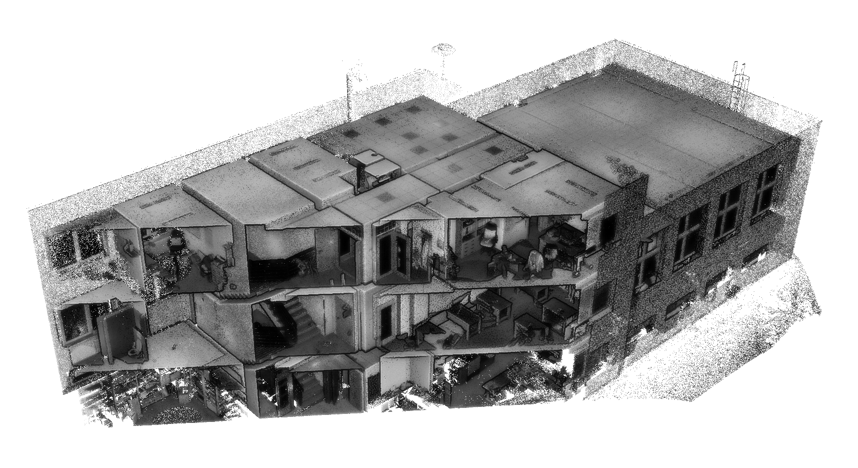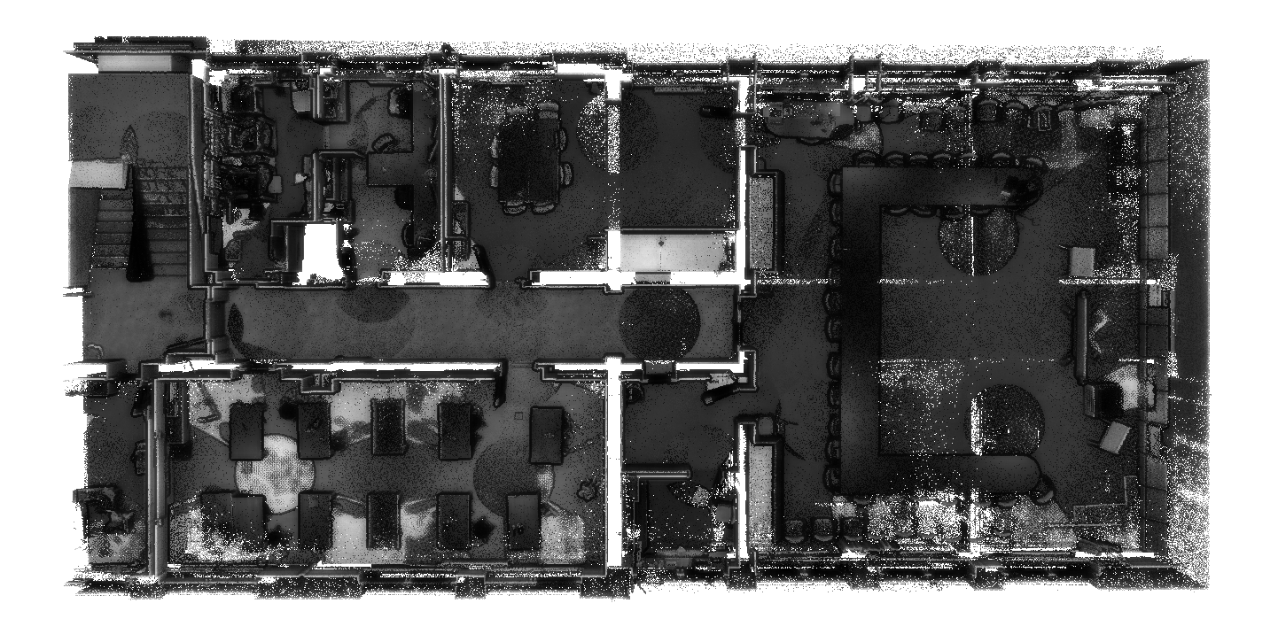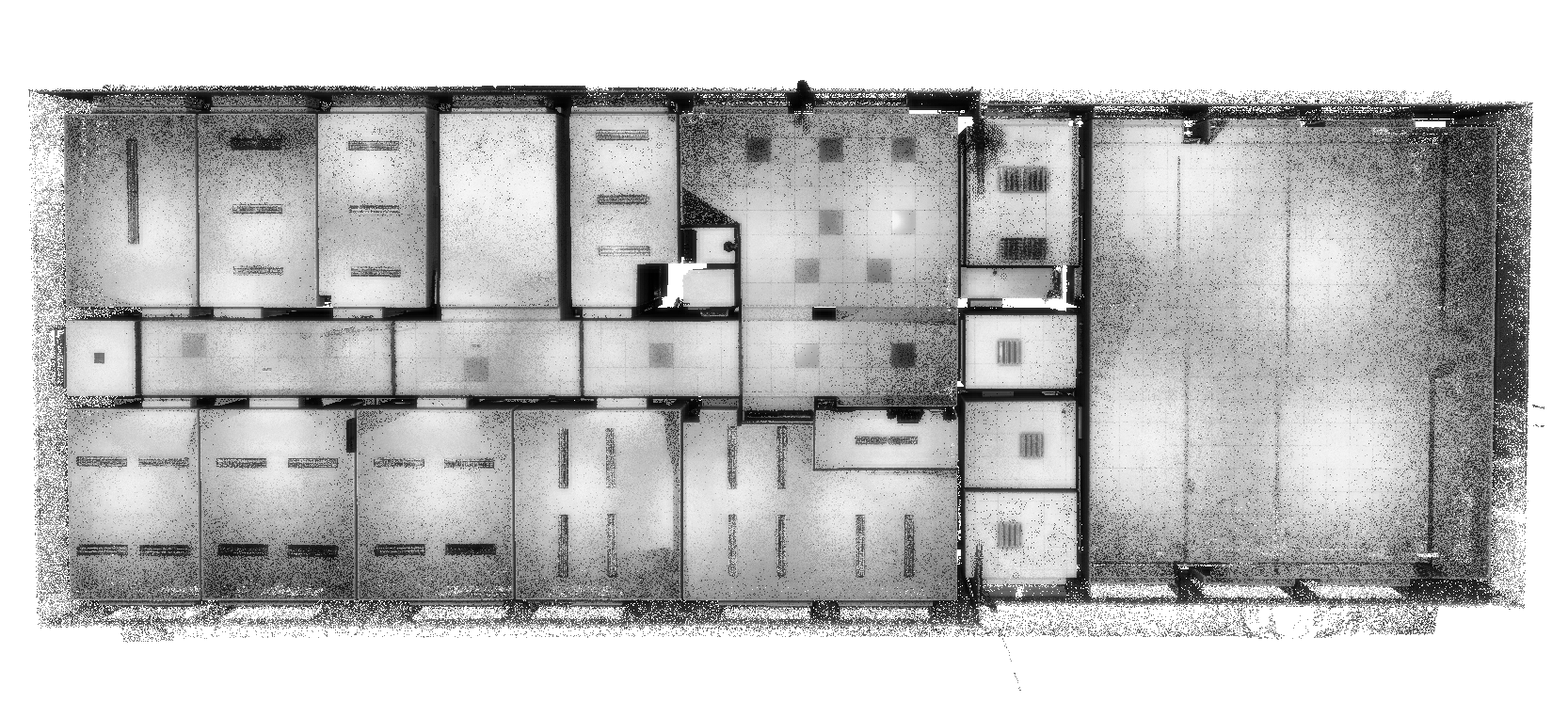 Realizovali jsme 3D skenování administrativní budovy s kancelářskými prostory. Skenování probíhalo v odstínech šedi a zabralo přibližně 4 hodiny. Přesnost registrace mračna bodů dosáhla hodnoty 0,7 mm na celý projekt.
