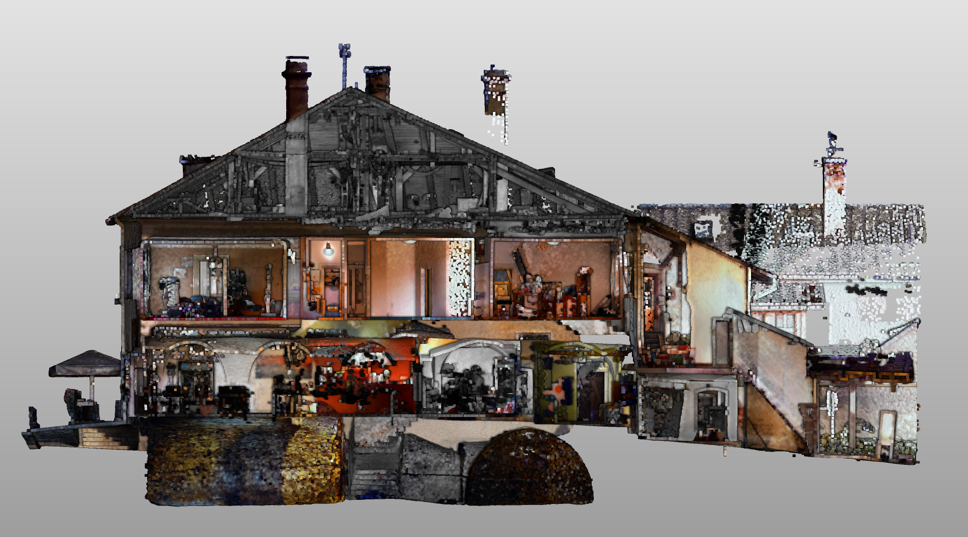 Zákazník si přál mít přesnou 2D výkresovou dokumentaci skutečného stavu historického domu. Provedli jsme proto detailní 3D laserové skenování všech podlaží, včetně podkroví a sklepa.