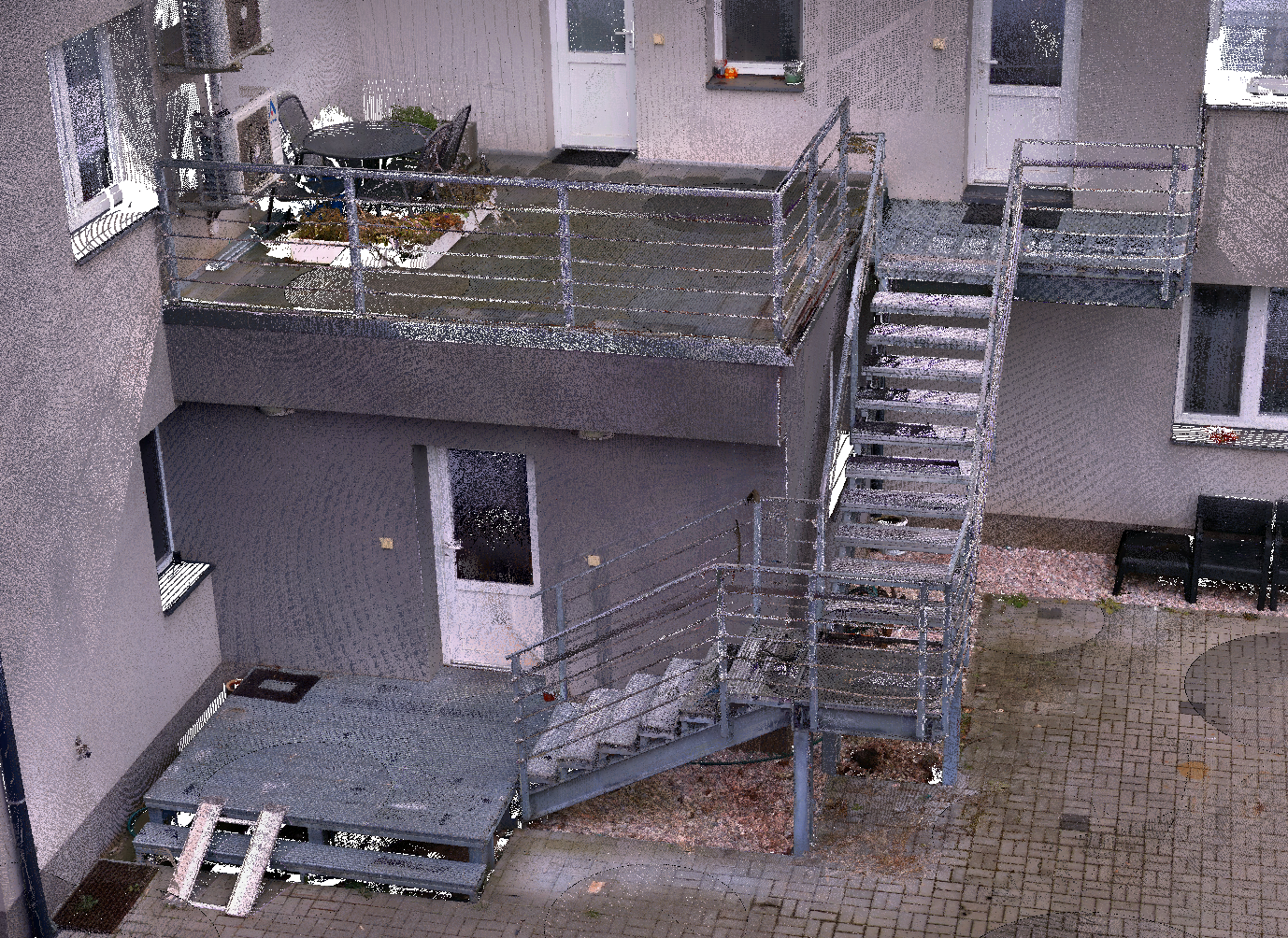 Současné schodiště v objektu již nevyhovovalo požadavkům majitele, a proto se rozhodl pro jeho kompletní výměnu. Aby projektant mohl přesně navrhnout novou konstrukci, bylo nutné provést 3D laserové skenování stávajícího schodiště.