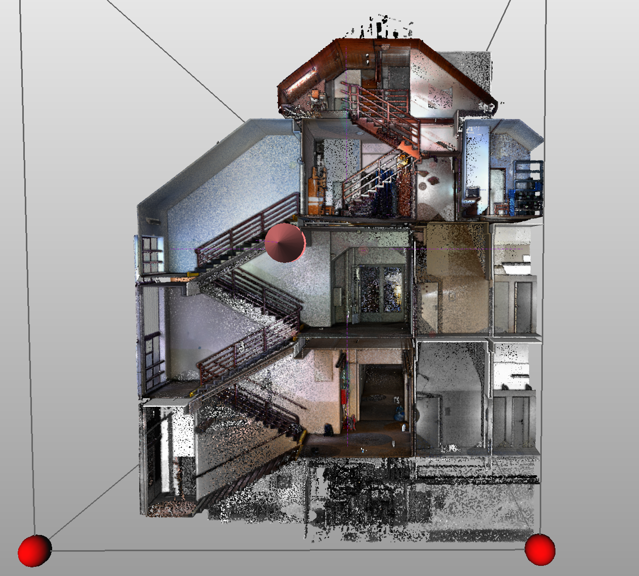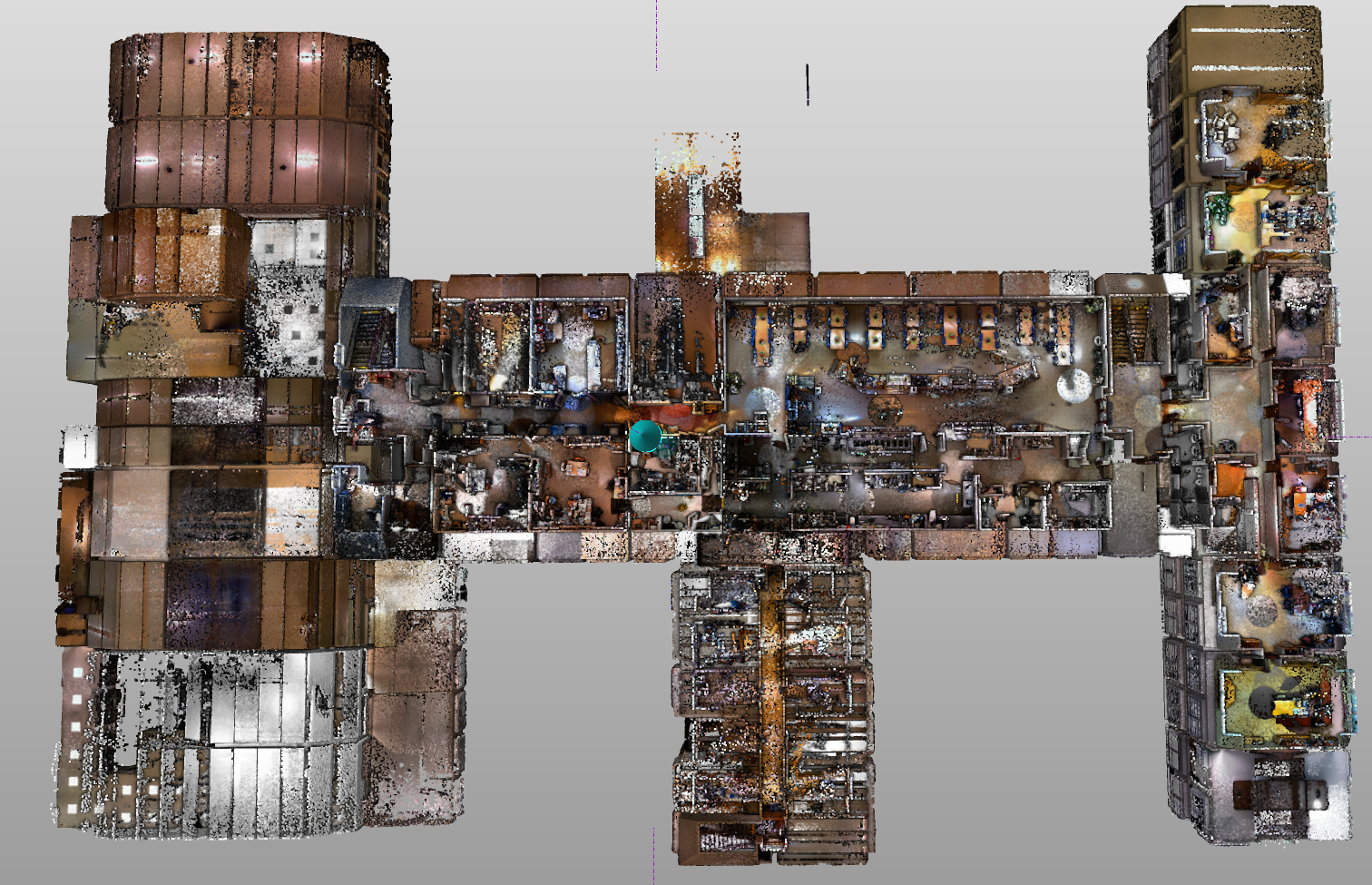 Použili jsme kombinaci barevného skenování pro lepší vizualizaci a šedotónového skenování pro přidružené prostory. Výsledné mračno bodů jsme vyčistili od šumu, odrazů i pohybu osob, a jednotlivá podlaží jsme následně georeferencovali tak, aby „seděla přesně na sobě“.