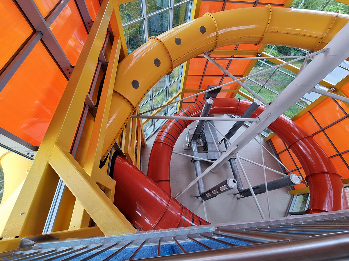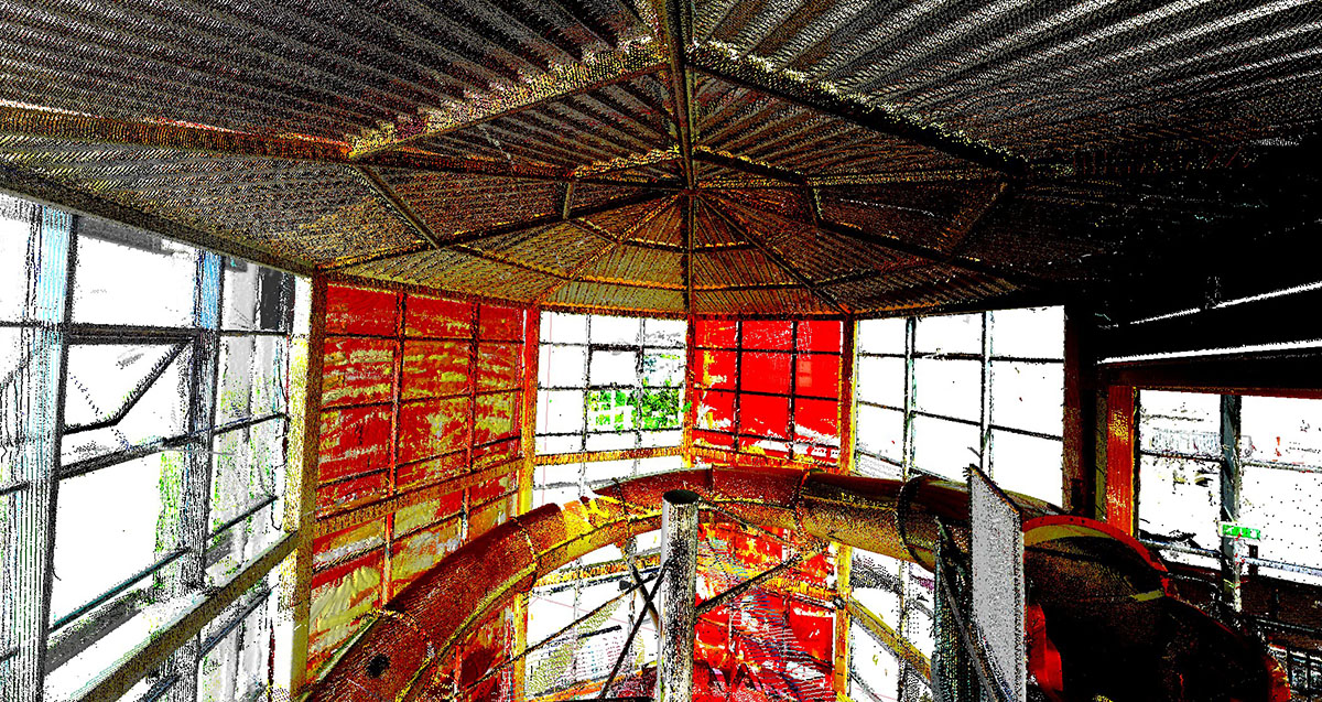 Pro klienta jsme provedli 3D laserové skenování tobogánu v Praze. Cílem bylo přesné zaměření nosných konstrukcí a ukotvení tobogánu. Díky této metodě může projektant navrhnout nový tobogán na stávající konstrukci, aniž by bylo nutné několikanásobné zaměřování klasickými metodami.