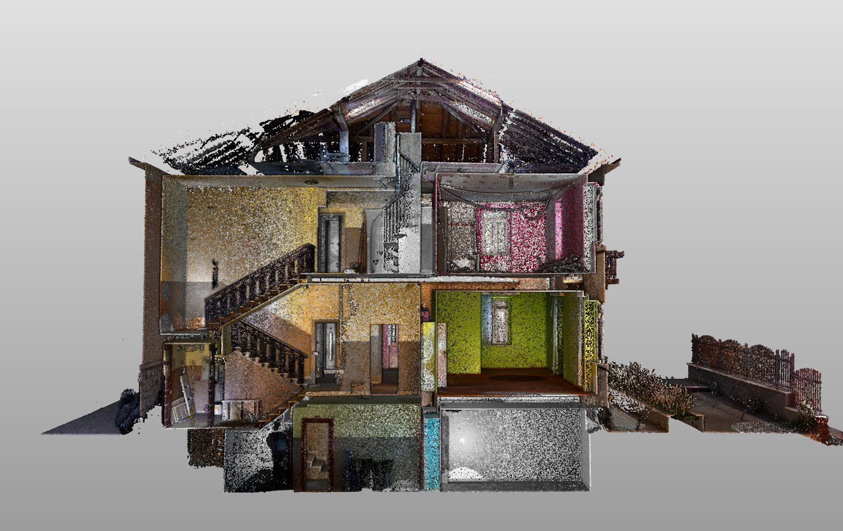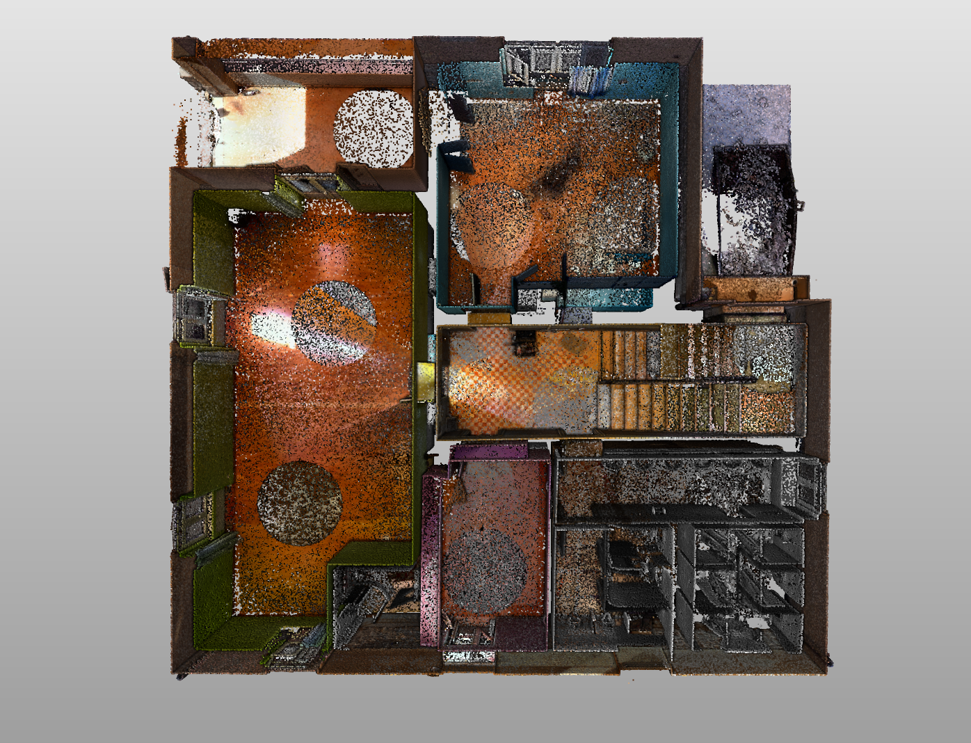 Pro zákazníka jsme dodali barevné skeny exteriéru a šedotónové záběry interiéru, včetně sociálního zařízení. Výsledkem je mračno bodů a podklady pro projektanta, který nyní může připravit rekonstrukci bez rizika nepřesností.